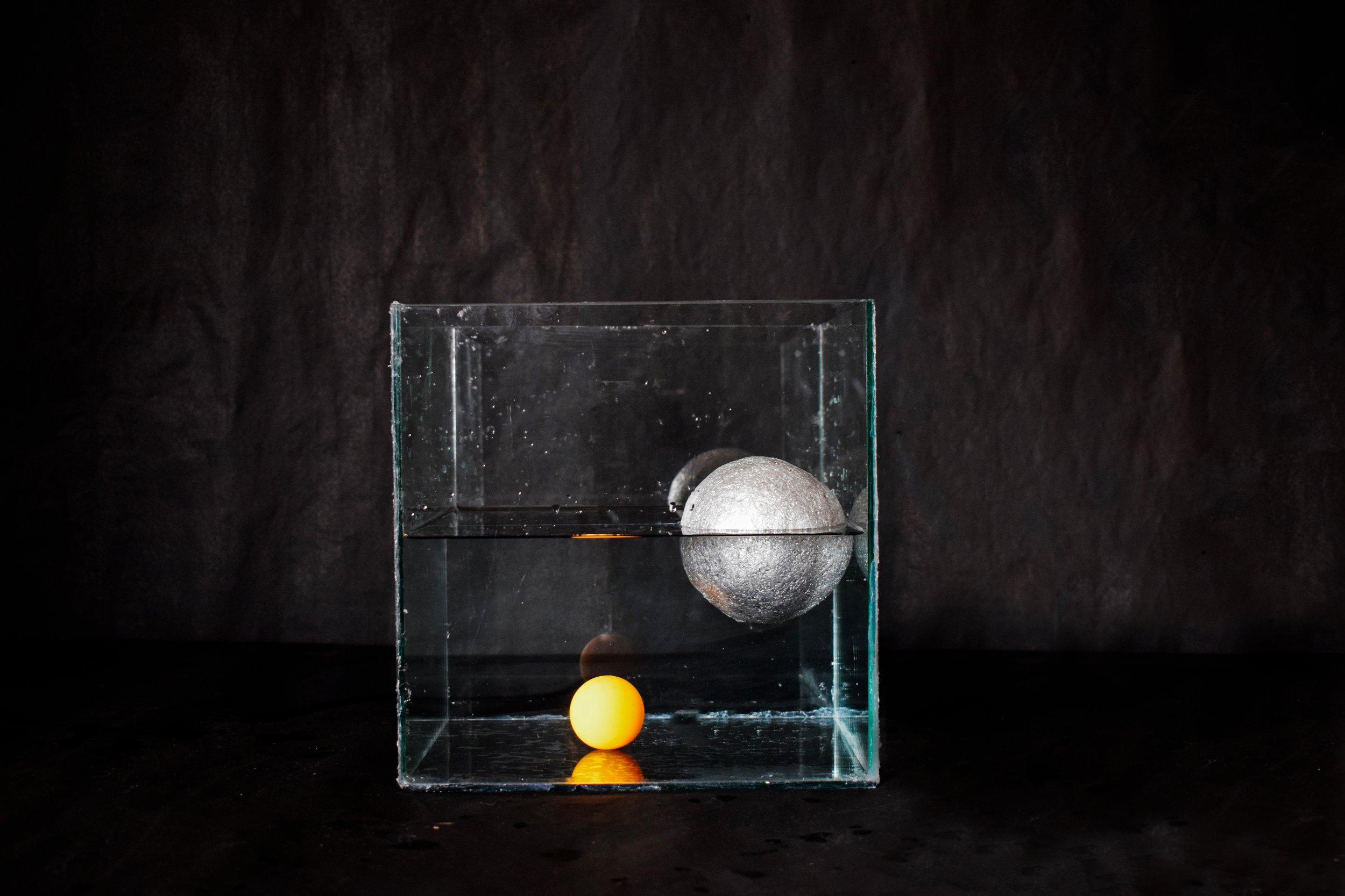 UnbalancedInstalação Vidro, papel de alumínio, bola de ténis-de-mesa24 x 24 x 23,7 x 23,7 cm, 30 x 300 cm Ver tamanho completo Ver tamanho completo Ver tamanho completo Ver tamanho completo Ver tamanho completo Ver tamanho completo Back